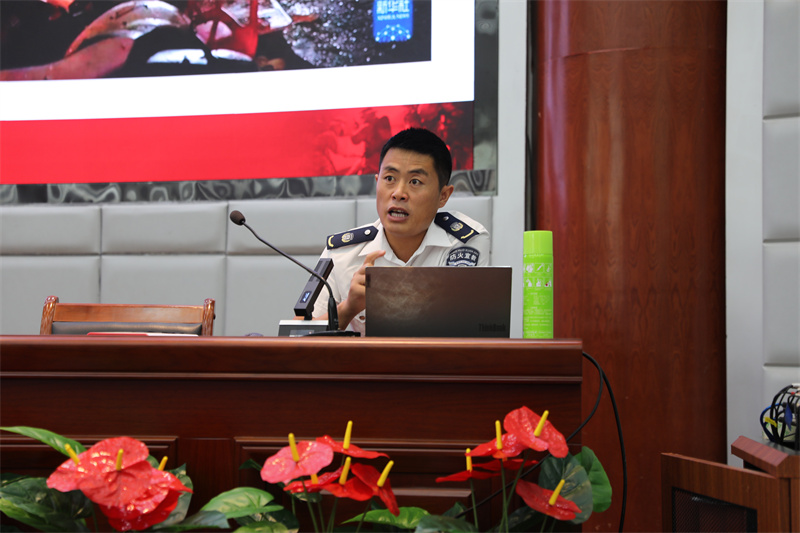 培训演练活动分为消防安全培训和实操演练两个环节。在消防安全培训环节中,用PPT和视频的方式为工作人员详细介绍了单位消防安全“四个能力”建设标准,消防安全“四个到位”,火灾的定义及分类,发生火灾的报警方法,灭火的基本方法,火场逃生技巧等消防安全常识,帮助大家深刻理解了“预防为主、防消结合”的学校消防工作宗旨。
