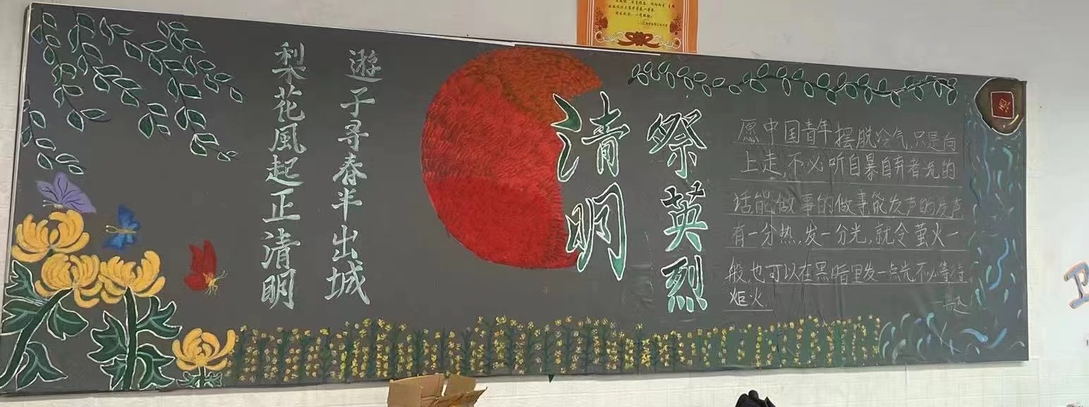 为弘扬爱国主义精神,厚植学生家国情怀,激励学生刻苦学习、奋斗拼搏、努力为祖国更加辉煌的明天做贡献。清明节前,校团委组织举办了“为中华之崛起而读书”主题板报比赛。