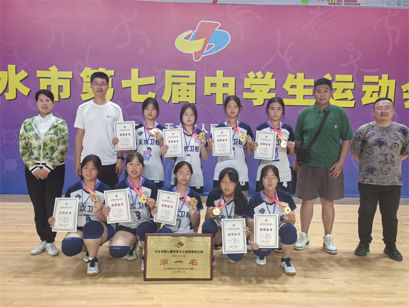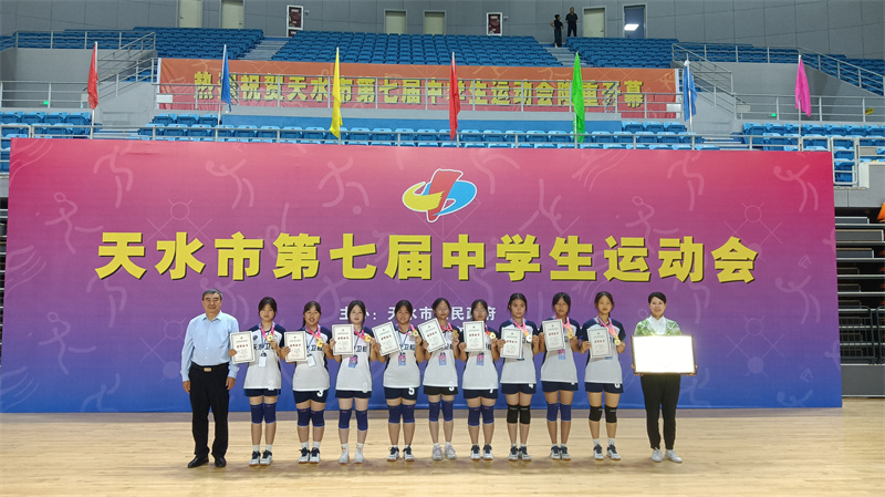 5月18日至20日,由市政府主办,市教育局、市体育局承办的天水市第七届中学生运动会在天水市体育中心举行。来自全市高级中学学校的7支代表队参加了女子高中组排球比赛。经过3天的鏖战,我校女子排球代表队凭借坚强的意志品质、不畏强手、敢于拼搏,斩获冠军,为学校的教育教学发展画下浓墨重彩的一笔。