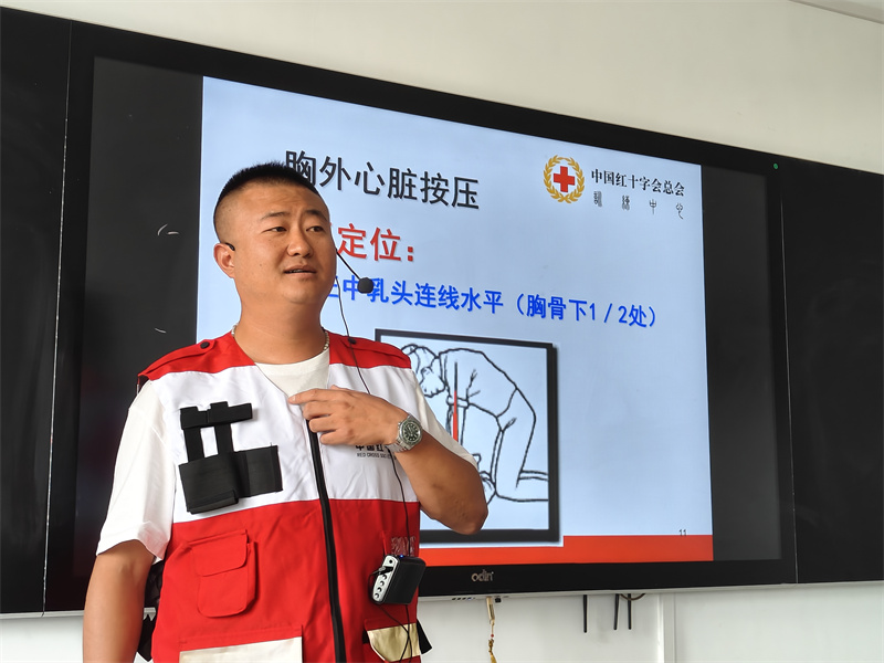 此次救护员培训包括理论知识与实际操作两个部分,秦州区红十字会应急救援队队长付朝旭详细讲解了红十字运动的基本知识和心肺复苏、气道异物梗阻、溺水、电击伤、烧烫伤、中毒、地震等急救方法,并对“心肺复苏”进行操作指导。