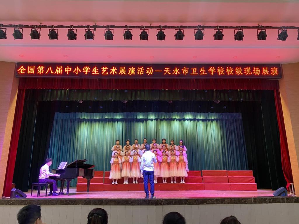 6月27日,全国第八届中小学艺术展演天水市现场展演在天水市职业技术学校开展,我校“天使”合唱团选送的合唱《如愿》、“金话筒”主持社选送的朗诵《穿越时空的对话》参加了展演。其中朗诵《穿越时空的对话》被天水市教育局选送至甘肃省参加展演。