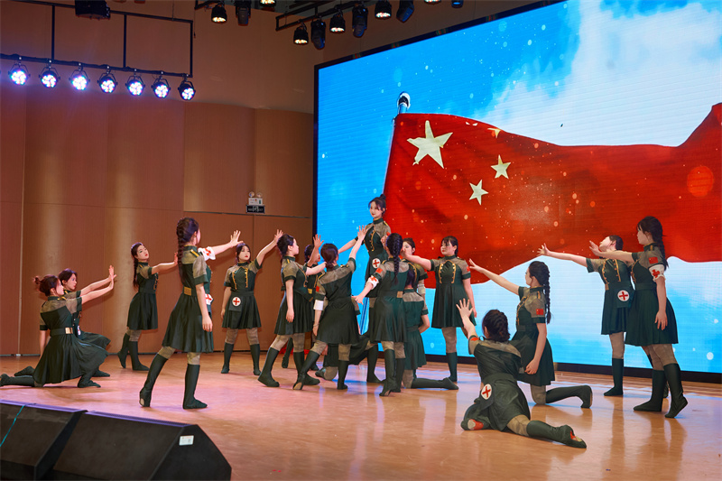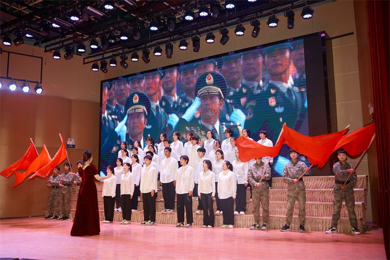 “天使”合唱团的同学们《唱支山歌给党听》,让《烈火中永生》的烈士们看到了《希望》,这段历史永远镌刻在每一个中国人的血脉中,我们不能忘,更不敢忘。卫生健康学院2024级护理1班以及2024级检验3班、康复技术2班带来的歌曲《强军战歌》鞭策着每一个中华儿女不断前进。