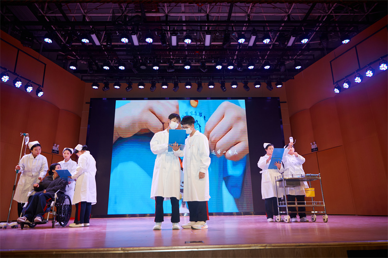 婴幼儿托育2432班、2024级康复技术1班带来充满活力的舞蹈《青春无悔》、我校教师陈宏驰和2023级高职中医养生班带来的歌伴舞《有我》、2024级护理1班、3班带来的情景剧《白衣天使 温暖绽放》展现出我校学子将秉承南丁格尔誓言,勇担社会责任,点亮未来之路,用实际行动奏响“技能成才,强国有我”的时代强音。