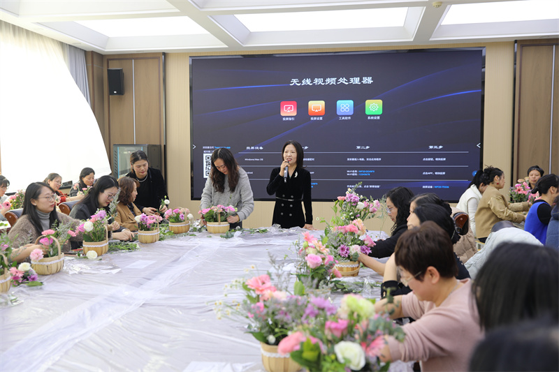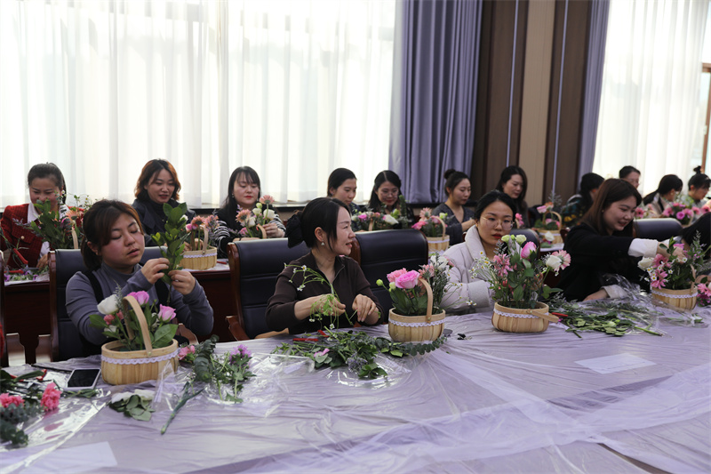 3月7日,为庆祝我国第102个“三·八”妇女节的到来,校工会组织全体女教工开展"芳华绽放展风采·巾帼筑梦新时代"主题庆祝活动。校党委书记张秀丽、校长宋继凯分别为全体女教工送上了节日的问候与祝福。女教工们在专业指导下体验创意插花,巧手制作出近百束鲜花作品;分享巨型节日蛋糕环节将气氛推向高潮,甜蜜滋味传递浓浓关怀。活动通过"花艺+美食+学习"的创新形式,穿插了科学知识、猜谜语有奖问答。既展现了卫生健康领域女性工作者的优雅风采,更彰显了学校"以人为本"的管理理念。女教工们纷纷表示,将以更饱满的热情投身教育事业。