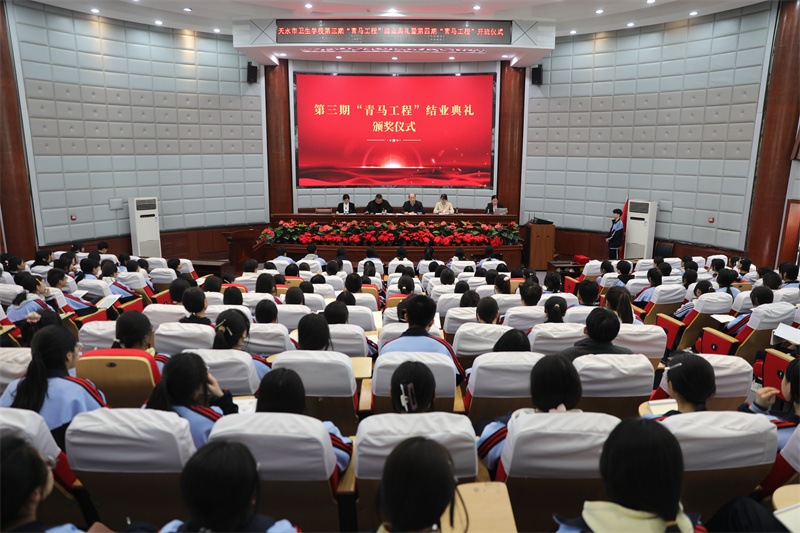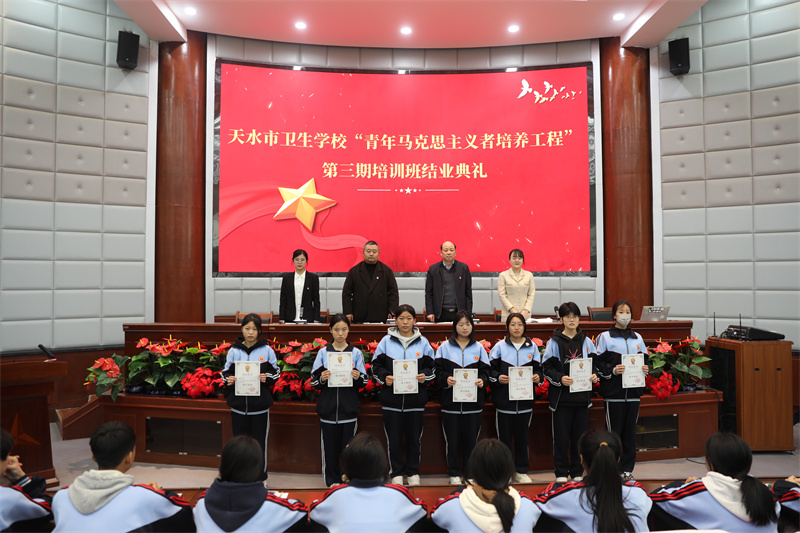 学生处主任莫凡宣读《天水市卫生学校第三期“青马工程”培训结业学员名单》及《关于表彰天水市卫生学校第三期“青马工程”优秀学员的决定》,并进行了颁奖仪式,为学员代表颁发结业证书,为优秀学员颁发荣誉证书,这不仅是对优秀学员个人的嘉奖,更是对全体学员的激励,鼓励大家以榜样为引领,不断进步。