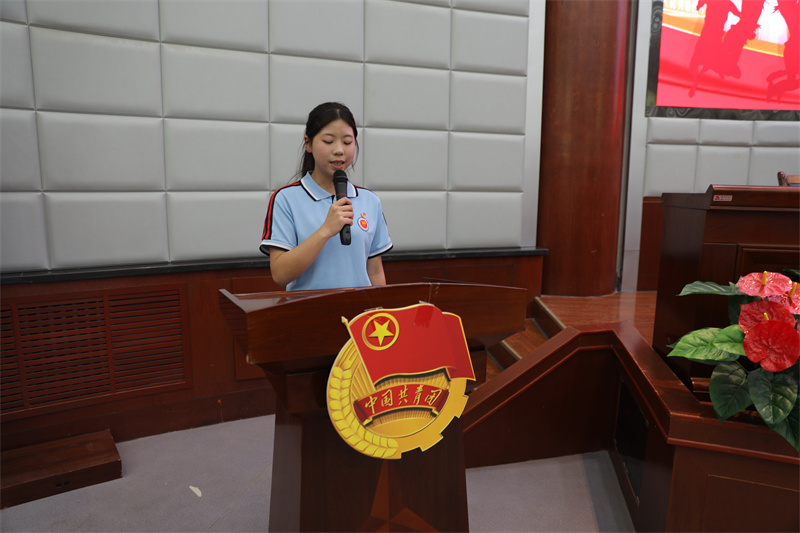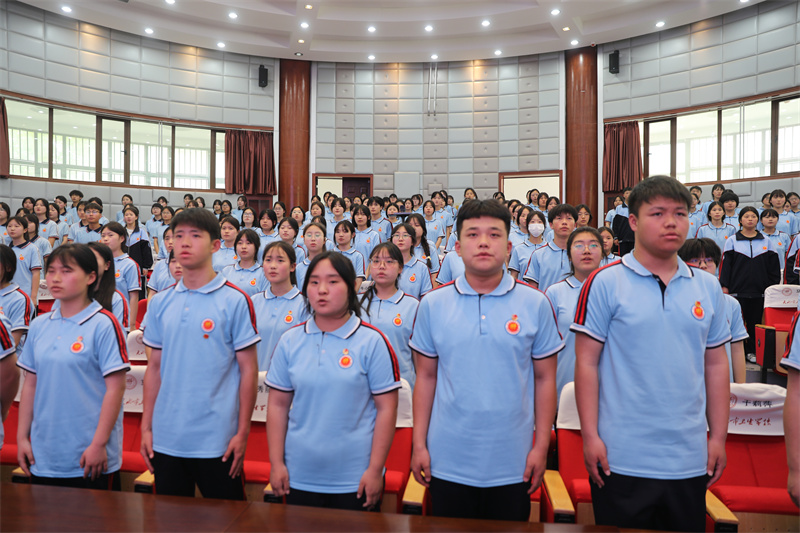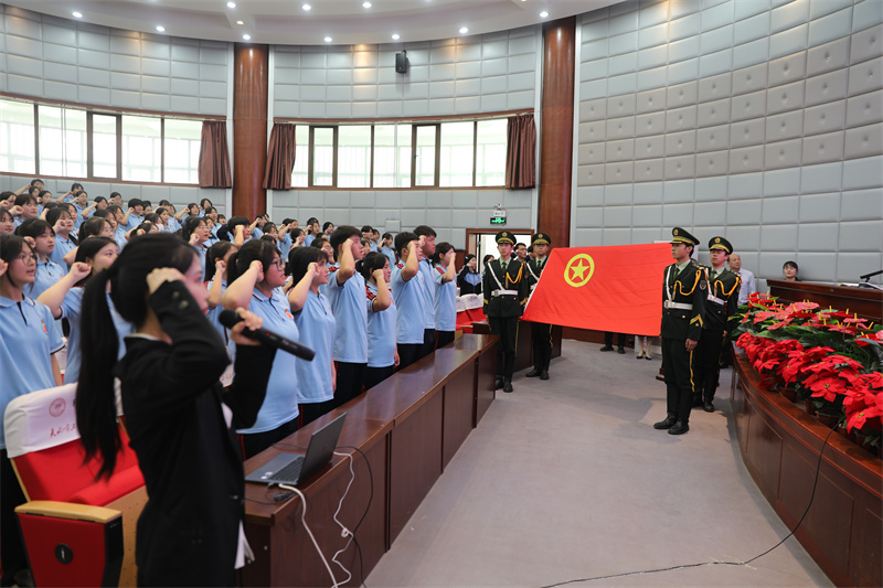 随后,新团员入团仪式开始,团委副书记杜露宣读了《共青团天水市卫生学校委员会关于批准张芷玚等291名同学加入中国共产主义青年团的决定》,校领导为新团员代表佩戴团徽。在团旗的见证下,291名新团员庄严宣誓,老团员重温入团誓词,铿锵誓言彰显了青春向党的赤诚之心。