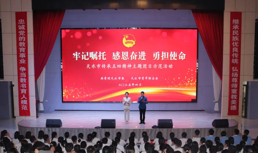 4月29日,由共青团天水市委、天水市青年联合会联合主办的以“牢记嘱托 感恩奋进 勇担使命”为主题的天水市传承五四精神主题团日示范活动在天水市第一中学麦积校区举行。