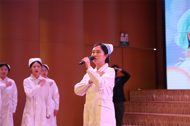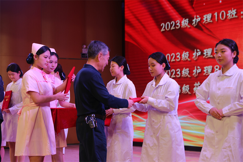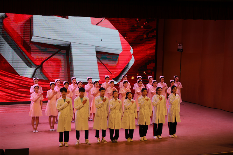 活动在庄严的国歌声中拉开帷幕,全场师生肃立齐唱,在五星红旗的映衬下,白衣天使的信仰之光熠熠生辉。市委教育工委书记、市教育局党组书记、局长杨瑞峰在致辞中向“白衣天使”们致以节日的祝贺,并勉励学子们:“德技兼修,用饱满的仁爱心守护每一位患者,用强烈的责任心规范每一次操作。”