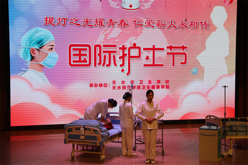 五月的风,携着南丁格尔的誓言,吹拂过青春的芳华;提灯的微光,照亮护理事业的初心,温暖生命的希望。12日下午,我校“5.12”国际护士节授帽仪式在天水师范学院音乐厅隆重举行。天水市委教育工委书记、市教育局党组书记、局长杨瑞峰,党组成员、副局长谢建平,天水市教育局电教馆副馆长闫锁田,天水师范学院学生工作处处长潘卫仓、团委书记刘颖、卫健学院院长刘仁憨以及天水市第一人民医院护理部主任靳绮、天水市第二人民医院护理部主任陈少娟、天水市第三人民医院护理部主任雷志洁、天水市中医医院护理部主任蒋涛、天水市第一人民医院外科片区护士长郭靓应邀参加授帽仪式。学校党委全体班子成员参加。