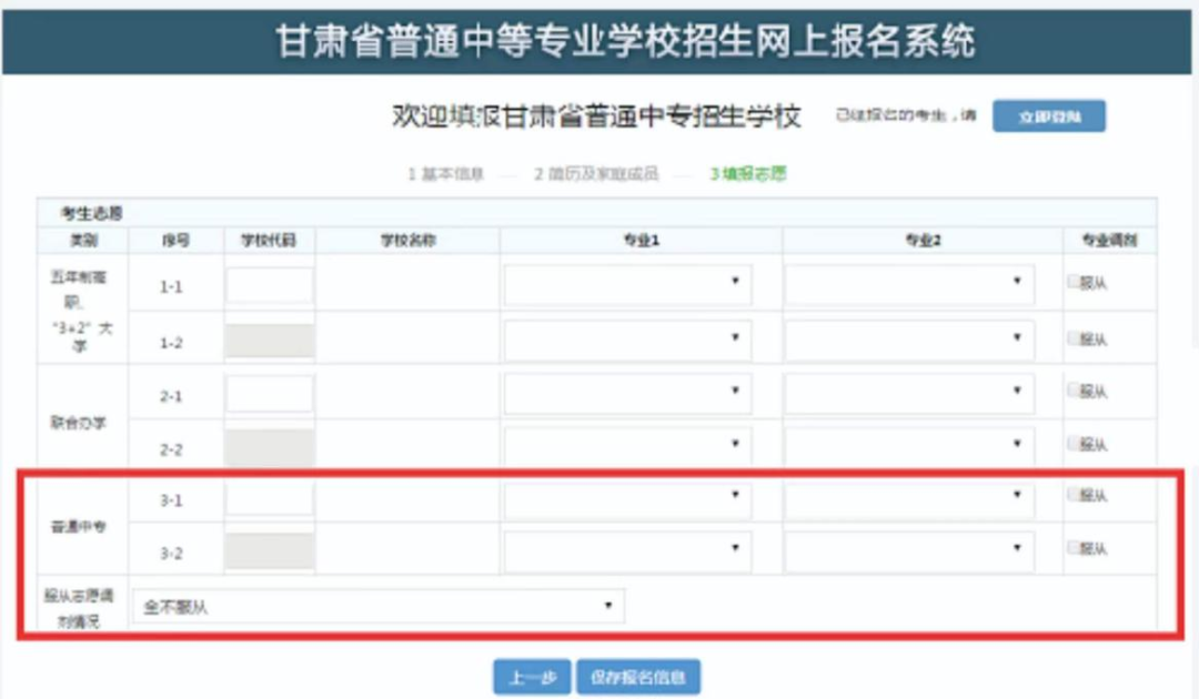 (1)只填报普通中专栏,学校代码:10044,请按第一志愿填报(3-1)。