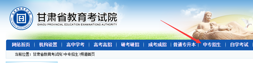 在网站首页中先点击中专招生,再点击网上报名(如下图):