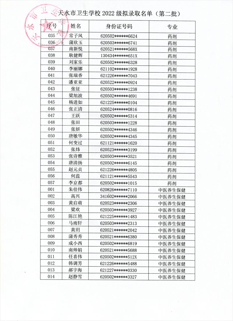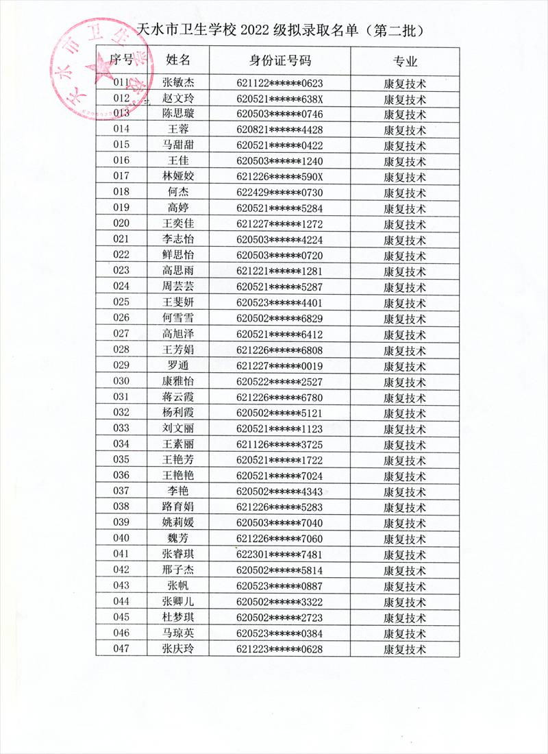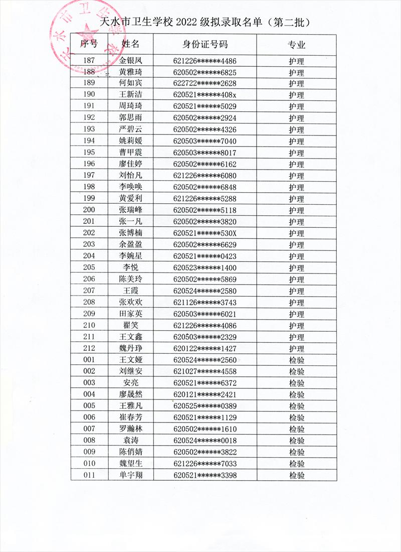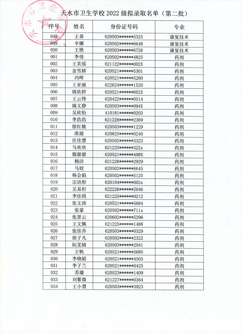 根据《天水市教育局关于2022年秋季学期开学的补充通知》,学校研究决定,9月6日、7日新生入学报到。现将我校第二批拟录取学生名单及报名注意事项予以公布。