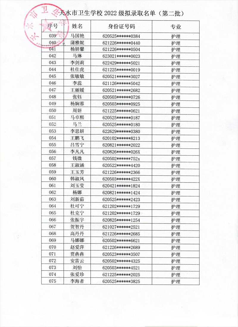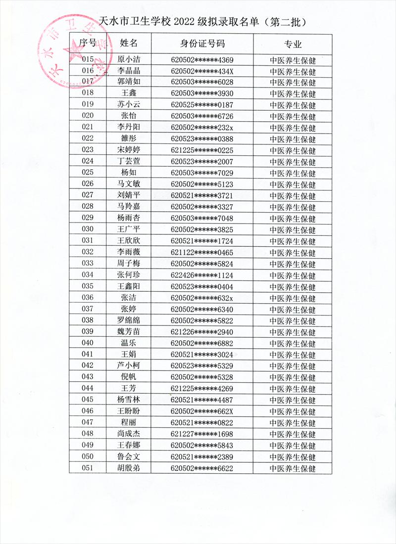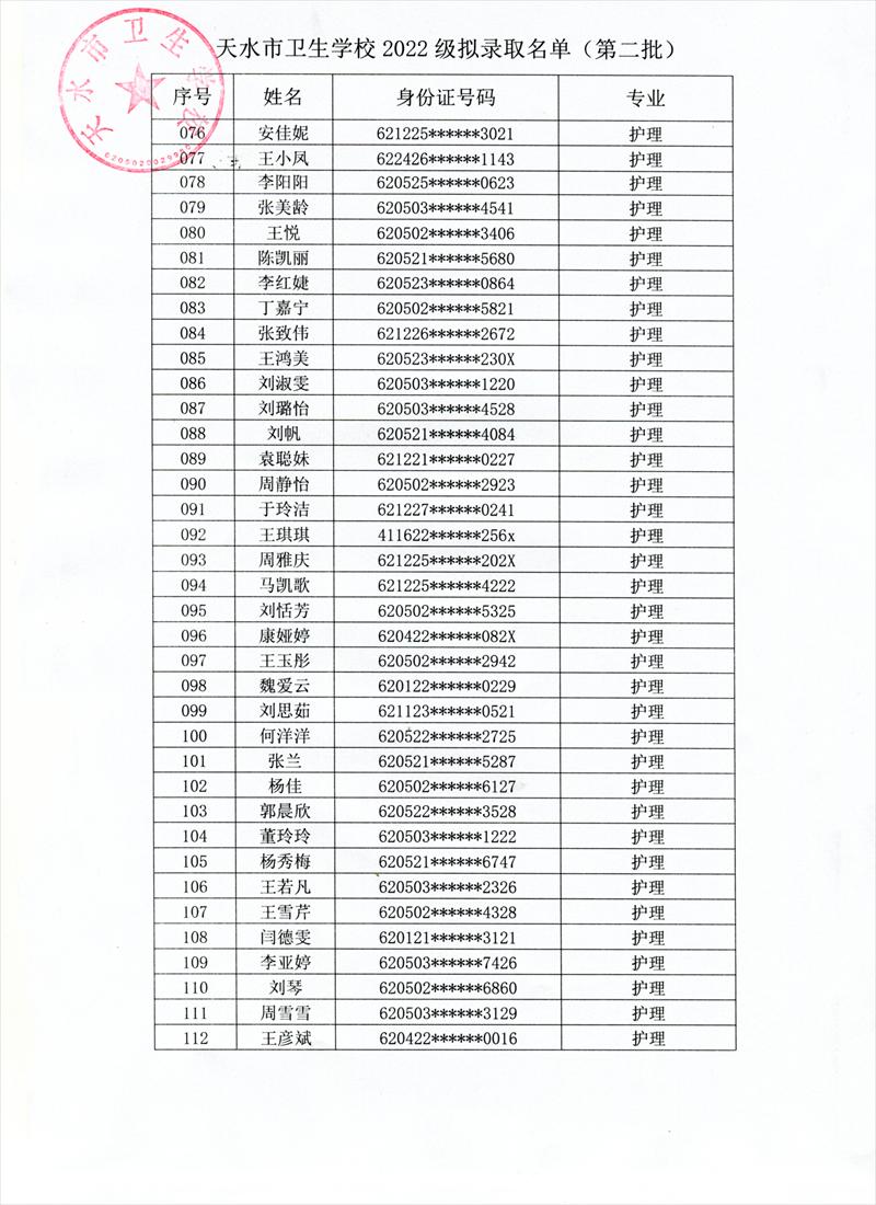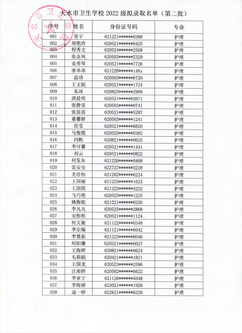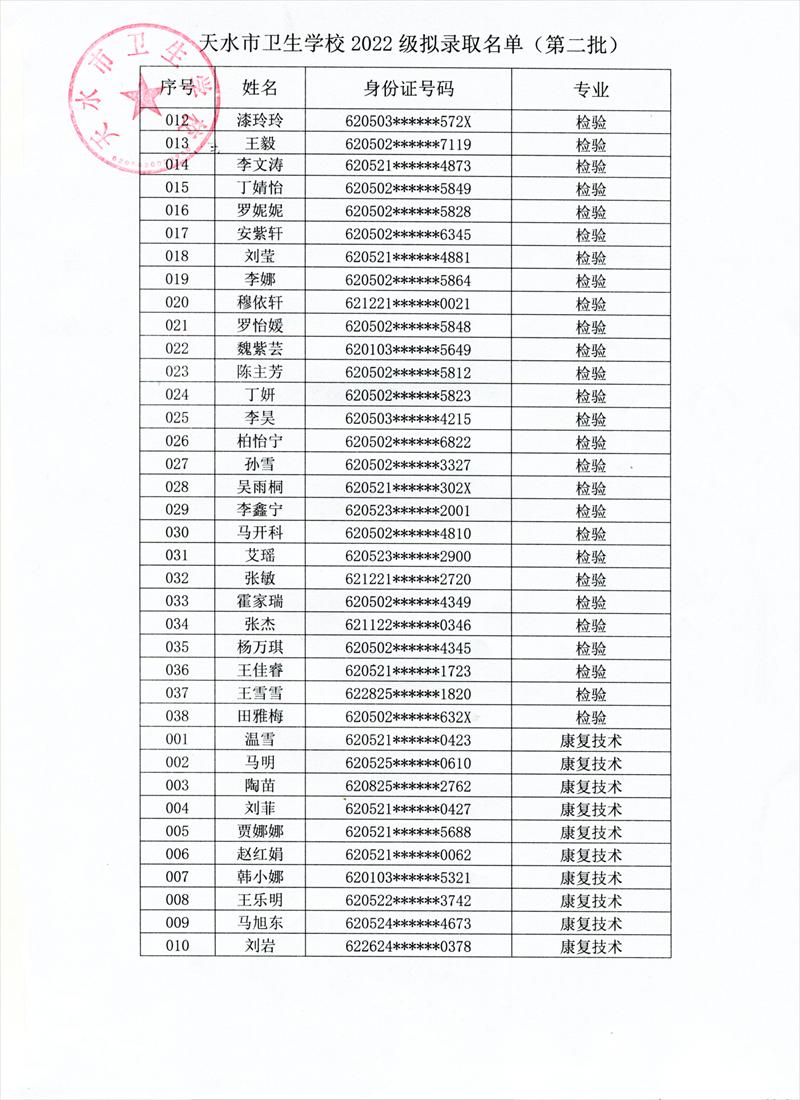 根据《天水市教育局关于2022年秋季学期开学的补充通知》,学校研究决定,9月6日、7日新生入学报到。现将我校第二批拟录取学生名单及报名注意事项予以公布。