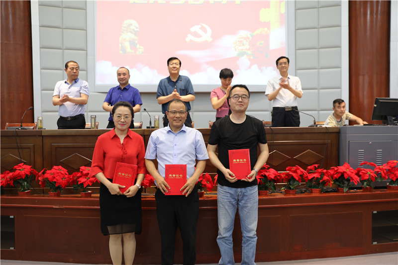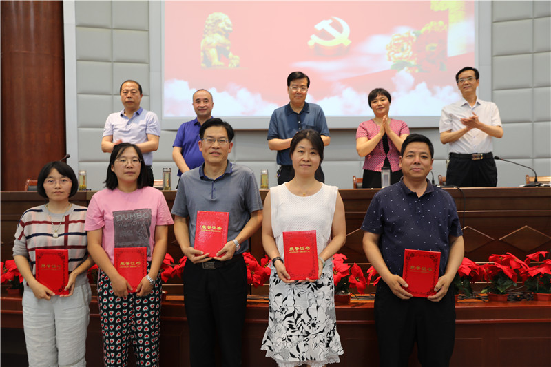 表彰大会在全体教职员工齐唱国歌声中拉开了序幕。会上全体党员重温了入党誓词,对在学校各项建设中涌现出来的20名优秀党员、3名党务工作者以及知识竞赛的获奖团体和个人进行了表彰。优秀党员代表杜露和优秀党务工作者代表杨永庆先后进行了发言,他们表示将更加珍惜荣誉,一如既往地投身教育教学实践,为学校的建设发展做出更大贡献。