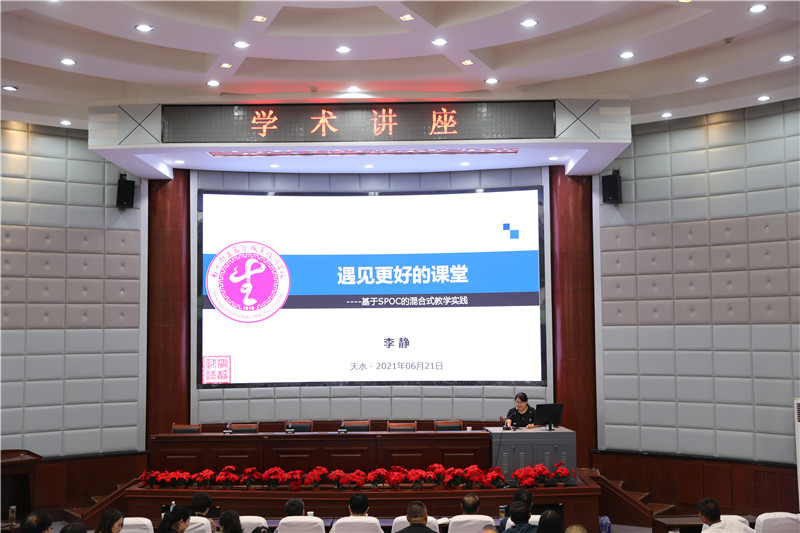 2021年6月21日下午,学校邀请南京卫生高等职业技术学校副校长唐晓曦、教学科研处主任李静博士在学术报告厅分别作了题为《优化培养方案涵养素质品格—五年贯通课程体系构建及运行》和《遇见更好的课堂—基于SPOC混合式教学实践》的学术讲座,校领导和全体专兼职教师聆听了讲座。