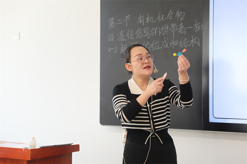 11月18日下午,由基础教研室杜露老师在401教室就《医学生物学》课程中“DNA的结构”内容进行公开教学,校领导及专兼职教师100余人到场听评课。