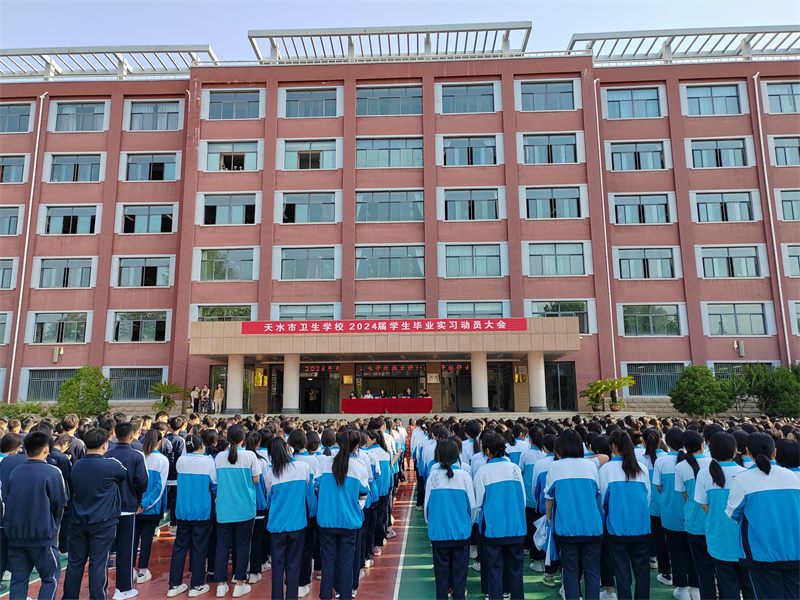 6月26日上午,在学校教学楼前广场召开2024届中职学生毕业实习动员大会。校党委书记张秀丽、副校长宋向前、钱斐出席会议,实训处及全体实习生及班主任参加大会。