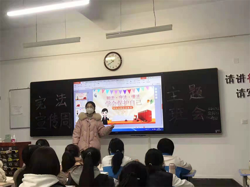 今年的12月4日是第八个国家宪法日,我们也迎来了第四个“宪法宣传周”。为认真落实习近平总书记关于宪法的重要指示精神和党的十九届六中全会精神,增强学生的宪法意识,使之更好地尊崇宪法、维护宪法、践行宪法,学生处紧扣“以习近平法治思想为引领,坚定不移走中国特色社会主义法治道路”主题思想,组织全校各班级于12月3日扎实开展“弘扬宪法精神,维护宪法权威”主题班会。