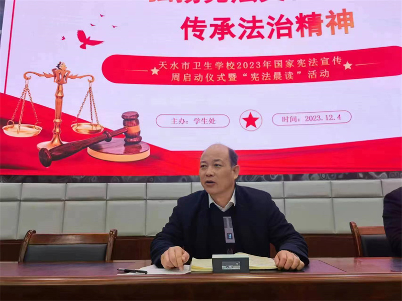 钱斐副校长对主会场全体师生发表了语重心长的讲话,要求学生们自觉遵纪守法,弘扬宪法精神,维护宪法权威。勉励青年学生们树立“天生我材必有用”的信心,不忘初心、不负韶华,以不懈奋斗的精神谱写青春的华彩乐章。