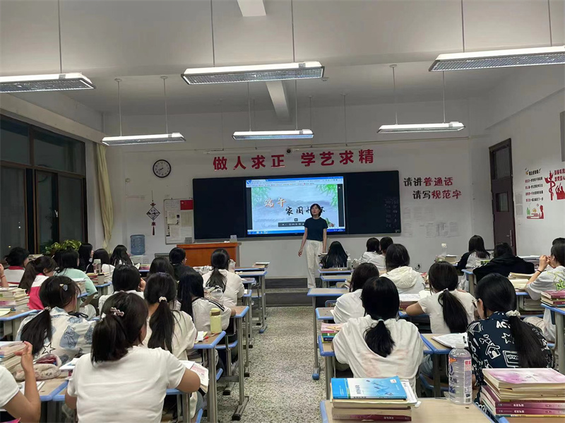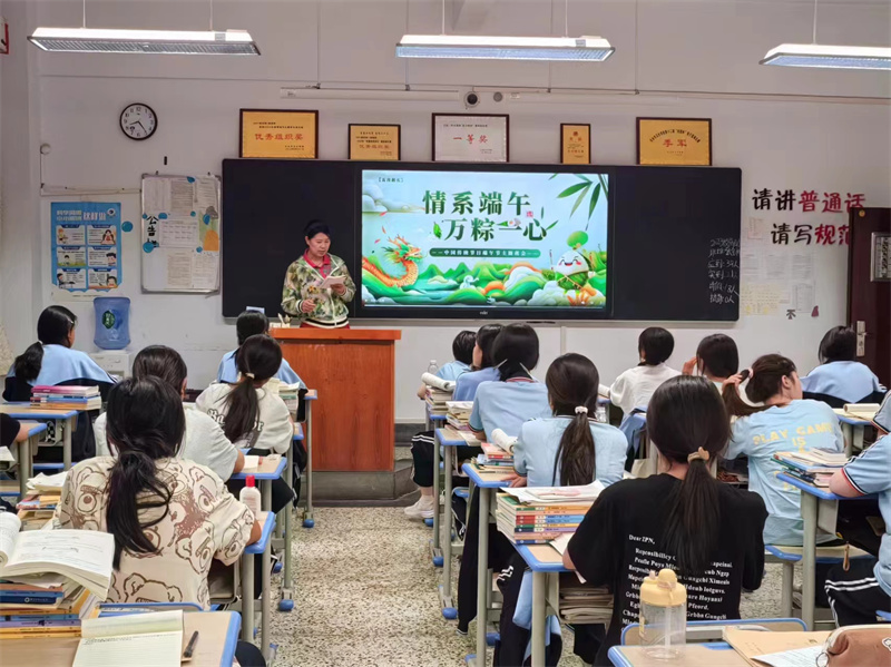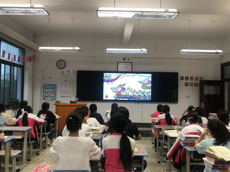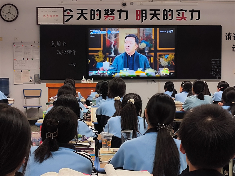 主题班会过程中,班主任老师带领同学们深入了解端午节的历史渊源和习俗活动,吟诵了有关端午的诗词歌赋,品味其中深厚的文化意蕴。师生围绕中央广播电视总台端午特别节目《奋楫家国——碧水长歌颂端阳2024》和河南卫视《端午奇妙游》节目展开交流和讨论,体验新媒体时代赋予端午节的独特魅力,和承载的丰富的历史文化和民族情感。