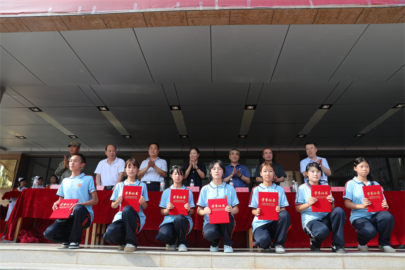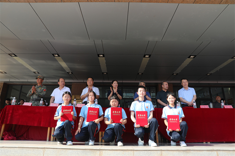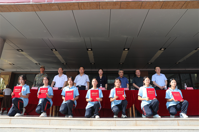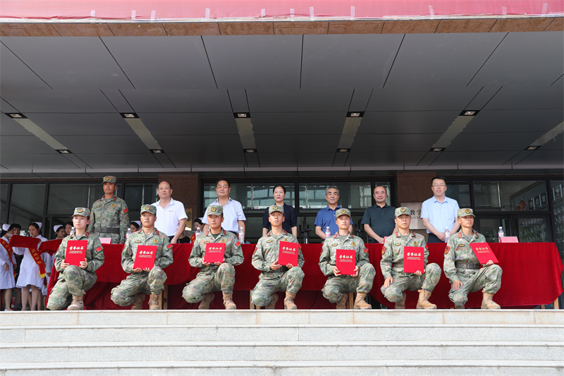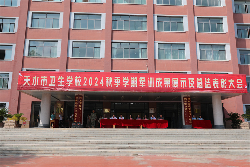 最后,校党委书记张秀丽代表学校向给予我们军训工作大力支持的天水市秦州区人民武装部表示衷心的感谢,向辛勤奋战在一线的教官、班主任以及所有辛勤付出的工作人员致以崇高的敬意和由衷的感谢,向顺利完成军训任务的全体2024级同学表示热烈的祝贺!并对全体新生提出三点希望:希望同学们持续巩固和发扬军训成果,悦纳自我,坚定信心,摆脱迷茫、找准定位,树立“战而必胜”的自信心,勇敢面对生活和学习中的困难与挫折;希望同学们保持军训中的昂扬姿态,在学习上“比、学、赶、超”,斗志昂扬地迎接新的学习生活;希望同学们坚信职业教育也能让人人出彩,树立明确的人生目标,志存高远,以天水市卫生学校为起点,科学规划自己的职业人生。