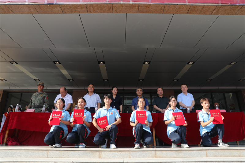 在2024级全体师生、学校各部门密切配合下,在区人武部和全体教官的辛苦付出下,为期7天的2024级新生军训圆满结束。9月2日下午,2024级新生军训成果展示暨总结表彰大会在学校教学楼前广场隆重举行。全体校领导出席大会,全体军训教官、班主任、全校学生参加大会。大会由副校长钱斐主持。