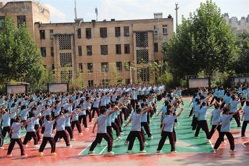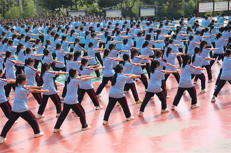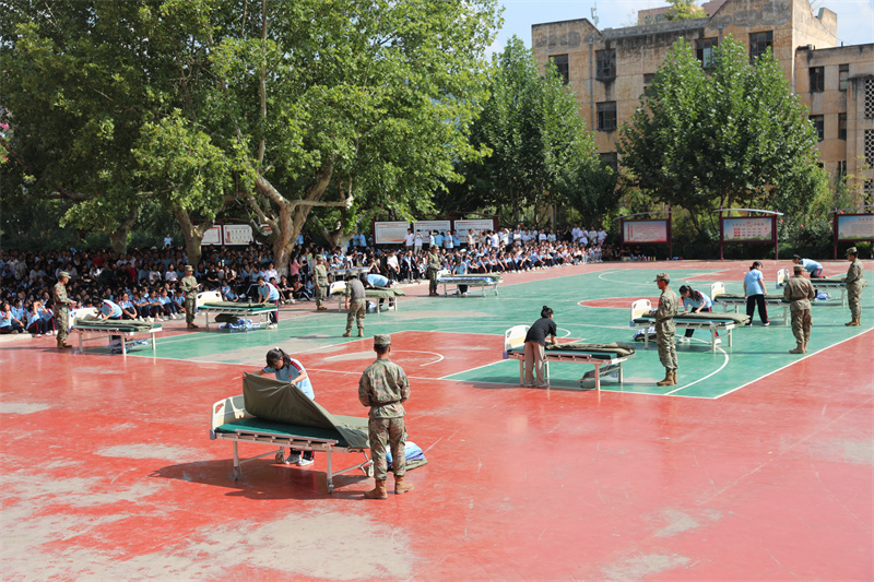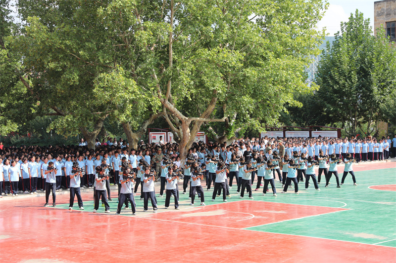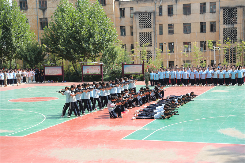 大会在庄严的国歌声中拉开帷幕。校长宋继凯宣布军训成果展示开始。随着军训团团长张育红的指挥哨音,2024级新生迈着铿锵有力的步伐开始了军训成果展示。他们目光如炬、队列整齐划一、口号坚定响亮、气势恢弘磅礴,一举一动之间展现出卫校学子昂扬向上、勇于挑战的精神风貌。军体拳、队列操、匕首操、战术演练等,每项动作浸透汗水,动静结合,节奏紧凑,一招一式,神形具备,尽显同学们的坚毅与自信,赢得了在场领导和师生的阵阵掌声。军训成果展示让我们看到,莘莘学子挥洒汗水,练就自我、完善自我,体现了新时期青少年的良好精神风貌。
