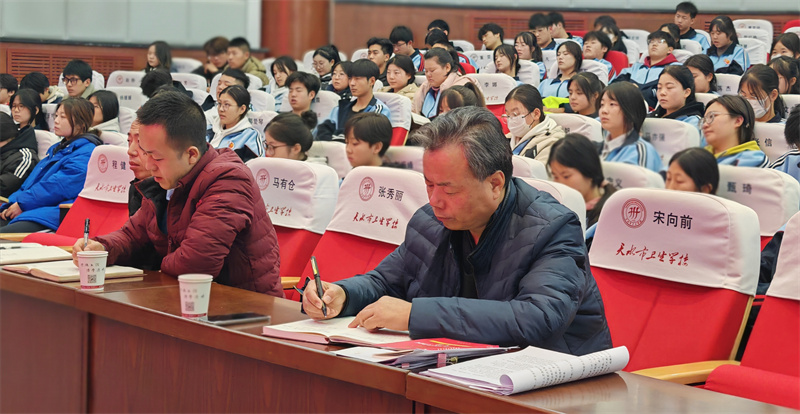 为持续深化学校法治教育,强化师生法治意识,我校联合市政法委,继宪法宣传周系列活动后,邀请天水市首席法律咨询专家、清水县副县长、清水县公安局长张建卓和天水市法学会秘书长万有太,于12月4日下午在我校多功能厅举办了一次专题法治宣讲会,我校210余名师生现场聆听了宣讲。
