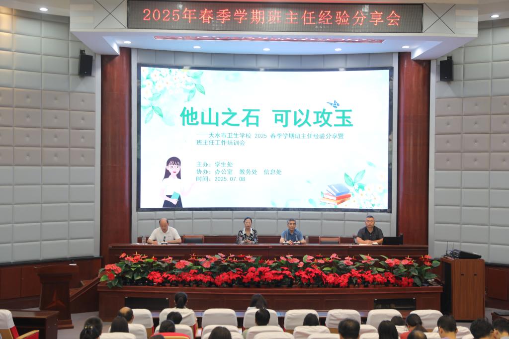 为加强班主任队伍建设,提升育人水平,我校于7月8日上午在学术报告厅召开2025年春季学期班主任经验分享会暨班主任工作培训会。副校长钱斐主持会议,党委书记张秀丽、校长宋继凯出席,全体教师参会。