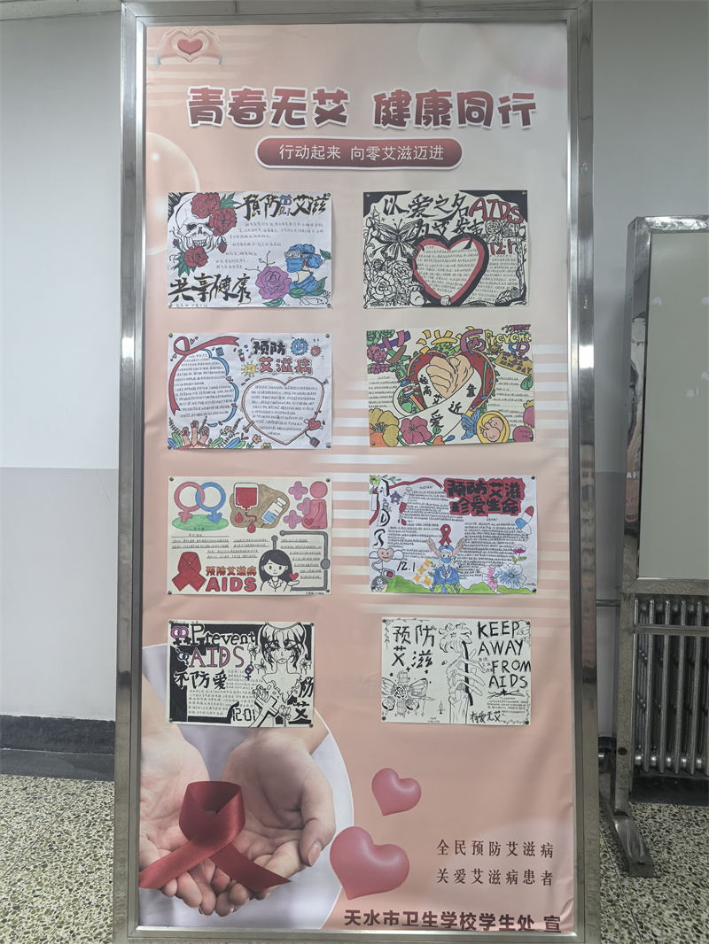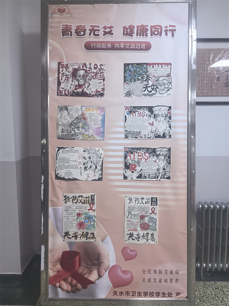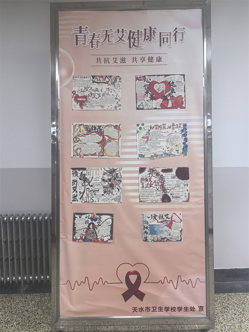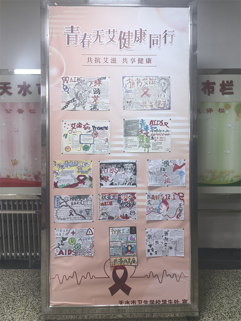 为提升学生对艾滋病防治知识的认知水平,强化自我保护意识与社会责任感,结合卫生类专业特色,营造“知艾防艾、共享健康”的校园氛围,天水市卫生学校学生处于12月23日正式启动“青春无‘艾’,健康同行”防艾手抄报宣传活动。本次活动旨在通过创意创作与知识传播相结合的方式,让防艾理念深入人心,助力构建零歧视的健康校园环境。