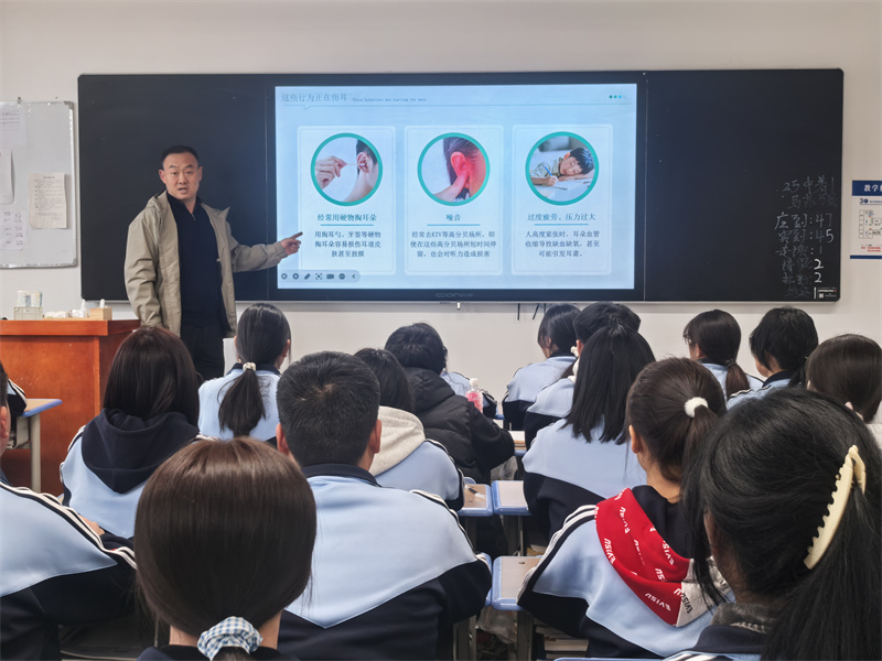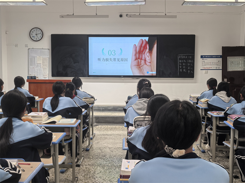 讲解过程中,同学们认真聆听,并就关心的问题与班主任进行互动交流。部分班级还设置了知识问答环节,进一步加深了学生对听力健康重要性的理解。此次活动利用午自习碎片化时间开展,形式灵活、覆盖广泛,有效营造了“人人关注听力健康”的校园氛围。