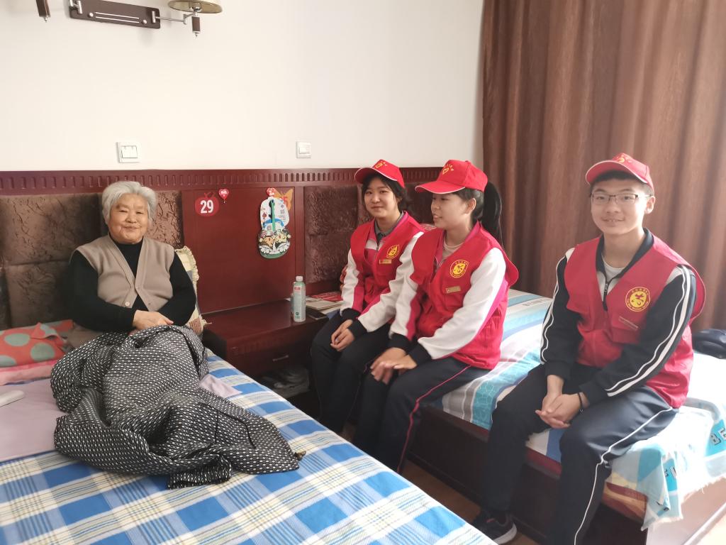服务队的到来受到老年护理院的热情欢迎。服务队员在了解了各楼层老人的基本情况后,便纷纷忙碌起来。有的搀扶行动不便的老人出来晒晒太阳;有的陪老人们看电视、话家常;有的讲述发生在学校的趣闻乐事。