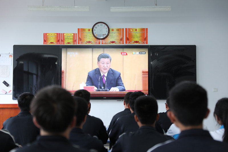 4月30日上午,校团委组织青年学生通过各班智慧黑板集中收看了纪念五四运动100周年大会直播,认真聆听习近平总书记重要讲话。