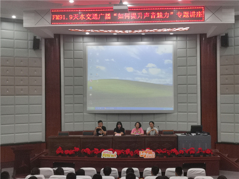 6月26日下午,FM91.9天水交通广播的4位主播老师来到我校,做题为“如何提升声音魅力”的专题讲座,整堂讲座内容紧凑,气氛热烈,互动积极。