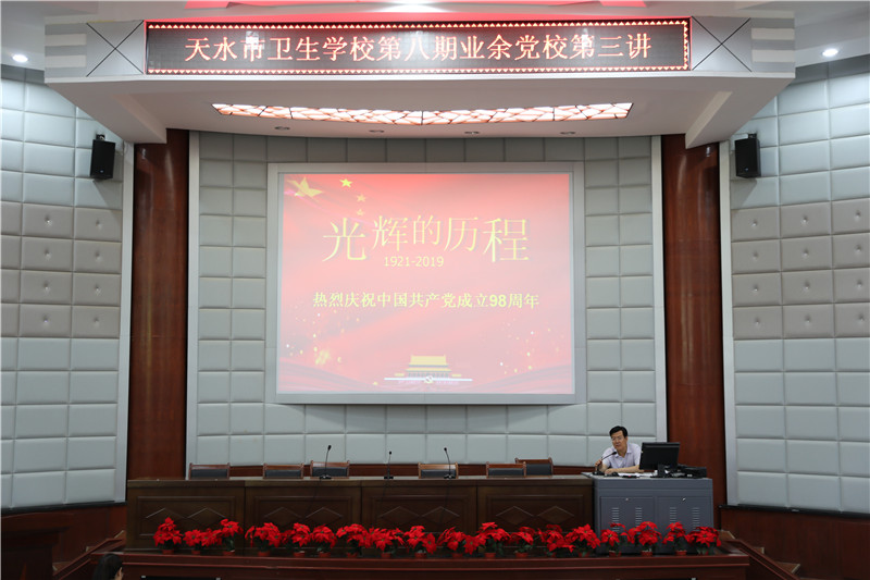 7月4日下午,我校第八期业余党校培训班第三讲在学术报告厅进行,毛如君校长以《光辉的历程》为题为全体学员上了一堂生动的党课。