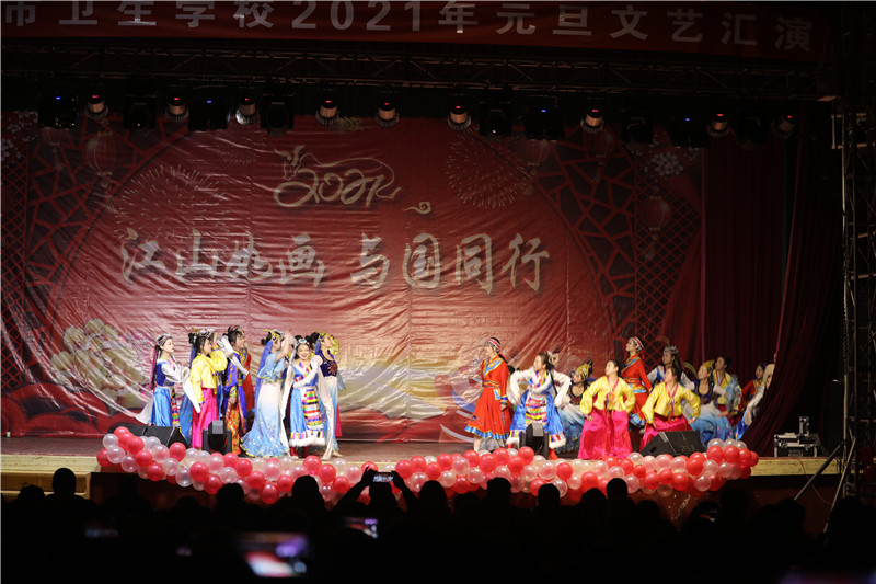 舞蹈《古扎古丽》表达了中华各族儿女对新年的期盼和对祖国的热爱,展现了卫校青年的良好精神风貌。