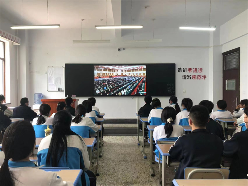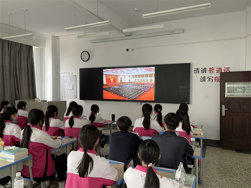 大会结束后,各班同学齐声高呼:“请党放心,强国有我”,以此来表达内心的激动心情。我们也将牢记习总书记的殷殷嘱托,做新时代的团员,始终坚定不移跟党走,踔厉奋发,勇毅前行,争做有理想、敢担当、能吃苦、肯奋斗的新时代好青年。