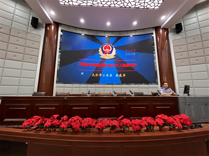 本次活动特别邀请了天水市公安局团委书记、法制支队支队长张建卓同志为同学们做了题为《学好网络安全法助力个人健康成长》的专题报告。介绍了《中华人民共和国网络安全法》,对《网络文明公约》进行解释说明,并通过典型案例,向同学们普及了如何预防网络诈骗,如何甄别网络钓鱼、木马病毒,如何防范信息泄露等网络安全知识。与大家分享自己知道的网络安全注意事项与做法。现场还设置了互动性高、参与面广、趣味性强的网络安全知识问答环节,同学们踊跃发言、积极参与,活动现场掌声阵阵,气氛热烈。