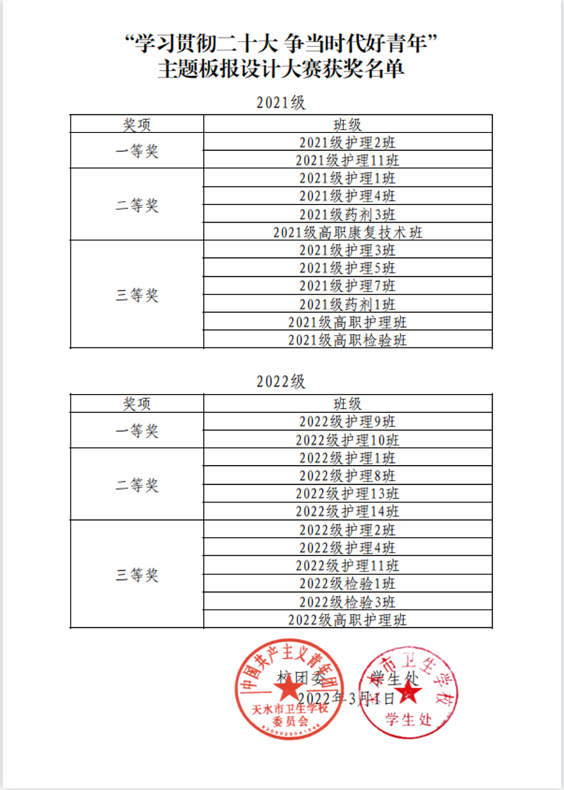 各班板报作品紧扣主题、内涵丰富、文字书写整齐美观、色彩亮丽、版面布局自然协调,全面宣传了党的二十大召开的重大历史意义,体现了我校广大青年良好的精神风貌和努力成为有理想、敢担当、能吃苦、肯奋斗的社会主义建设者和接班人的坚定信念。