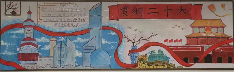 绘明丽的配图,为青春增添灵动飘逸的色彩;执轻巧的画笔,抒写对党浓厚真挚的告白。为深入学习宣传贯彻党的二十大精神,教育引导广大青年坚定不移听党话、跟党走。近期,我校成功举办了“学习贯彻二十大 争当时代好青年”主题板报设计大赛。