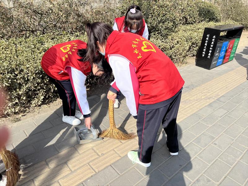 志愿者们在团委老师的带领下积极行动,拣拾草坪和绿化带内的白色垃圾、清除杂草枯枝。大家分工合作,配合默契,劳动场面热火朝天。身穿校服、志愿者红马甲的同学们走出校园,劳动的身影成为一道靓丽的风景线,路过的居民纷纷对他们投去赞许的目光。经过大家共同的努力,街道环境面貌焕然一新,大家的脸上也都洋溢着幸福的笑容。