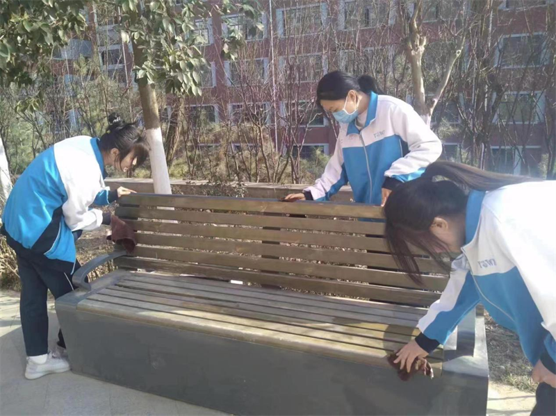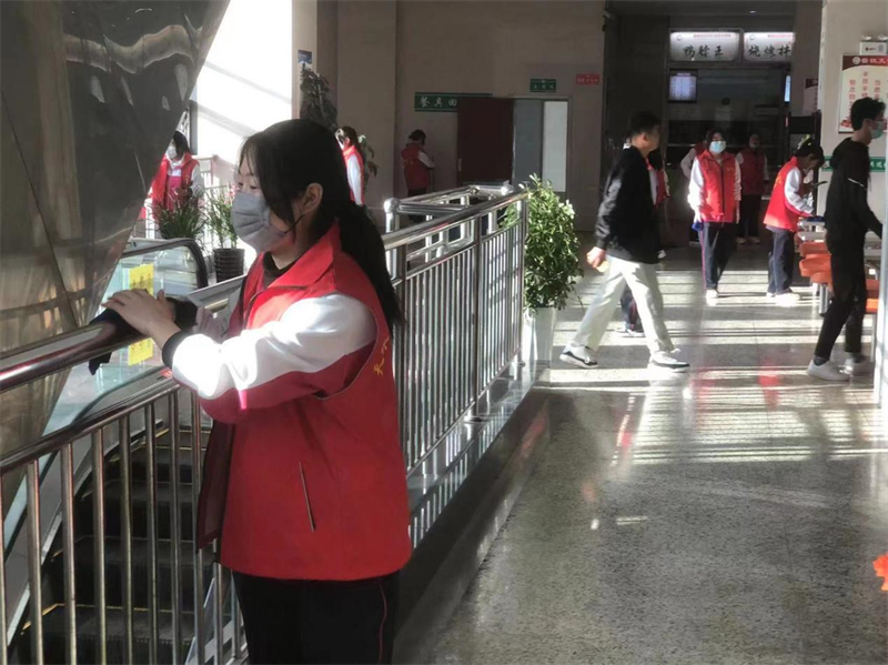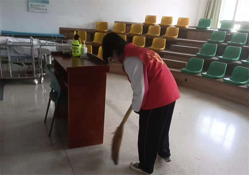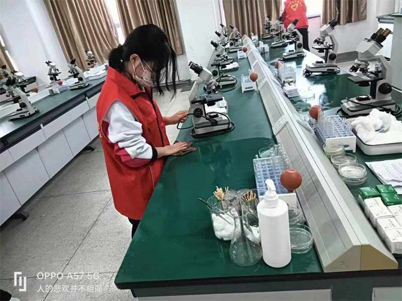 3月7日,志愿者们帮助教师整理实验室卫生