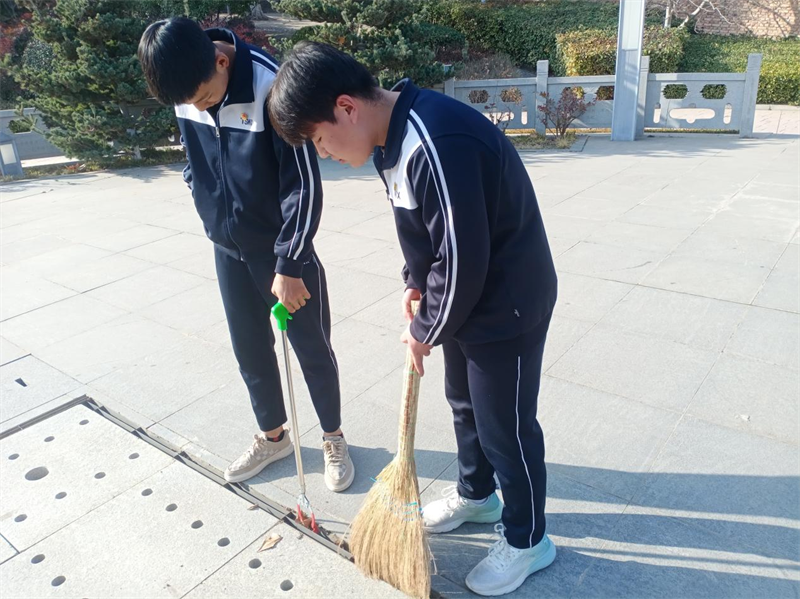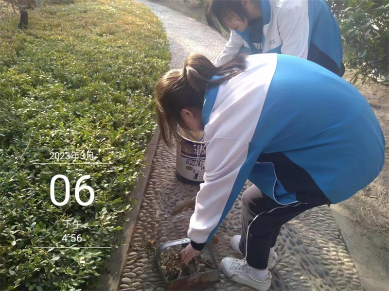 3月6日,青年志愿者清扫校园死角