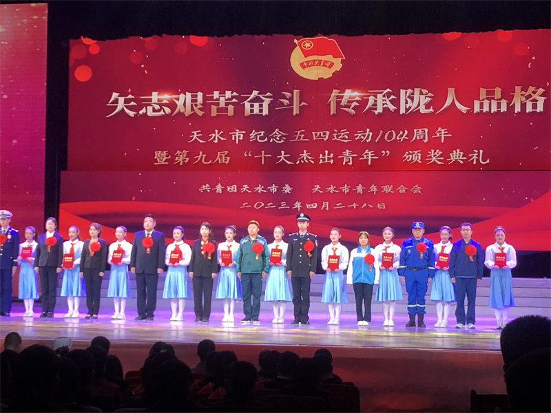 4月28日上午,在天水市纪念五四远动104周年暨第九届“十大杰出青年”颁奖典礼上,我校2021级高职中医养生班何丽娟同学荣获2022年度“天水市优秀共青团员”称号。