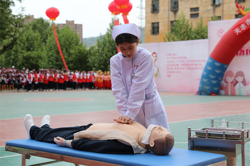 随后,卫校青年表演了情景剧《这盛世,如您所愿》、护理技能操作《心肺复苏》、护理礼仪舞蹈《一起向未来》、歌伴舞《最美是你》,共同庆祝第112个国际护士节。学子们用铿锵有力的青春誓言、精湛的护理技能,向众人展示了我校护生的良好的专业素养和积极向上的精神风貌。