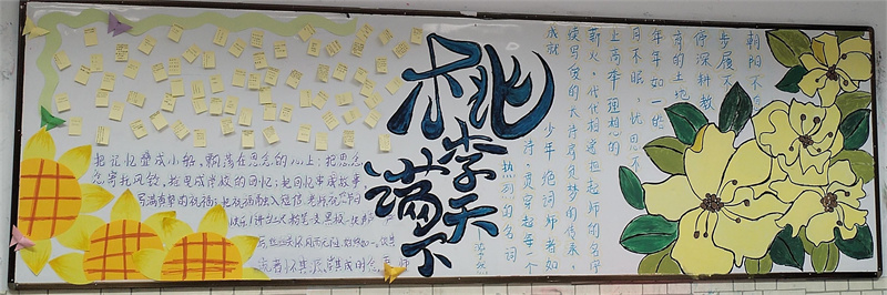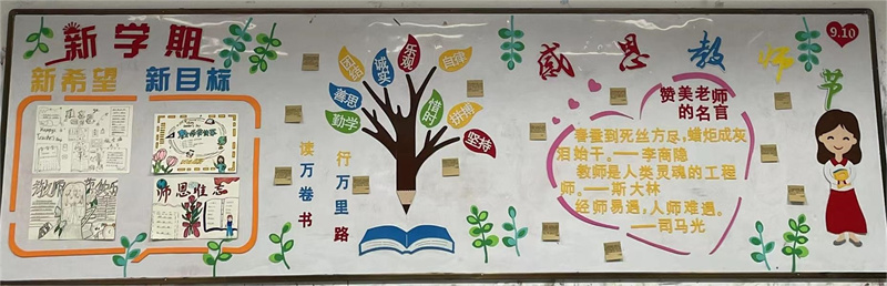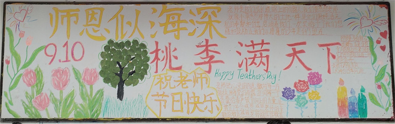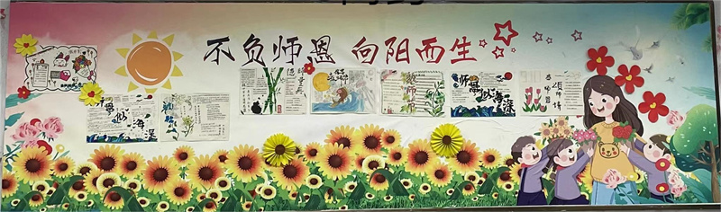 金秋九月至,微风送清凉,在第39个教师节来临之际,我校开展了“不负师恩、向阳而生”主题板报设计比赛,同学们纷纷献上诚挚的祝福,用自己的方式表达对老师的敬意,给辛勤工作的老师们送上了一份诚挚的节日祝福,祝全体老师教师节快乐!
