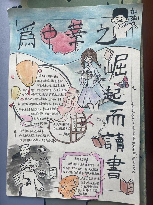 为弘扬爱国主义精神,落实立德树人根本任务,厚植学生家国情怀,激励学生刻苦学习、奋斗拼搏、努力为祖国更加辉煌的明天做贡献。清明节前,校团委组织举办了“为中华之崛起而读书”主题手抄报比赛。