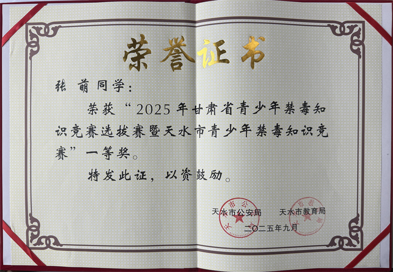 张萌同学的获奖,不仅是个人的荣誉,更是我校长期以来高度重视学生综合素质教育、扎实开展安全与法治教育的成果体现。学校始终将禁毒宣传教育作为德育工作和校园安全的重要内容,通过主题班会、知识讲座、宣传展板等多种形式,常态化开展禁毒知识普及,有效提升了全体学生的禁毒意识和自我保护能力。
