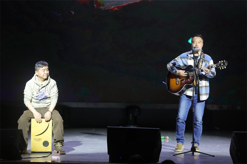 随后的节目如同一幅流动的画卷,渐次展开风华。舞蹈《春意到》以柔婉身姿勾勒春意萌动,如暖风拂面;《上春山》以整齐划一的舞步,挥洒出青春的蓬勃朝气。刘振峰老师的吉他弹唱《我们的时光》《曾经的你》,以流转的琴声与深情的嗓音,唤起岁月深处的悠长回响。