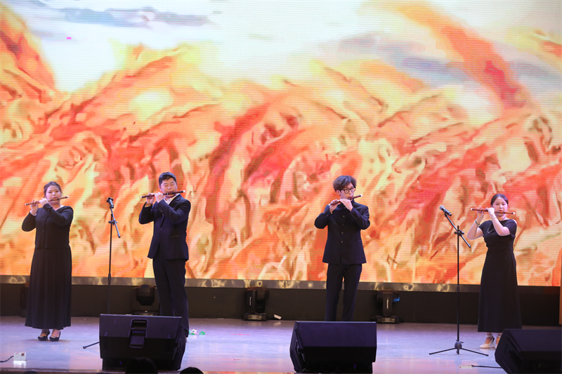 汇演特邀天水师范大学音乐舞蹈学院、体育运动与健康学院的学子登台献艺,以精湛表演为舞台注入别样风采。笛子合奏《扬鞭催马运粮忙》笛声清越、节奏明快,恍如骏马驰骋,将民乐的蓬勃生机展现得淋漓尽致;独唱《雪白的鸽子》嗓音婉转,情感丰沛,如清泉流淌心田,吟唱出对和平、美好与团圆的深切向往;武术表演《震山河》,一招一式刚柔并济、气势如虹,尽显中华武术的深厚底蕴与撼人气魄,令全场赞叹不已,将演出推向高潮。